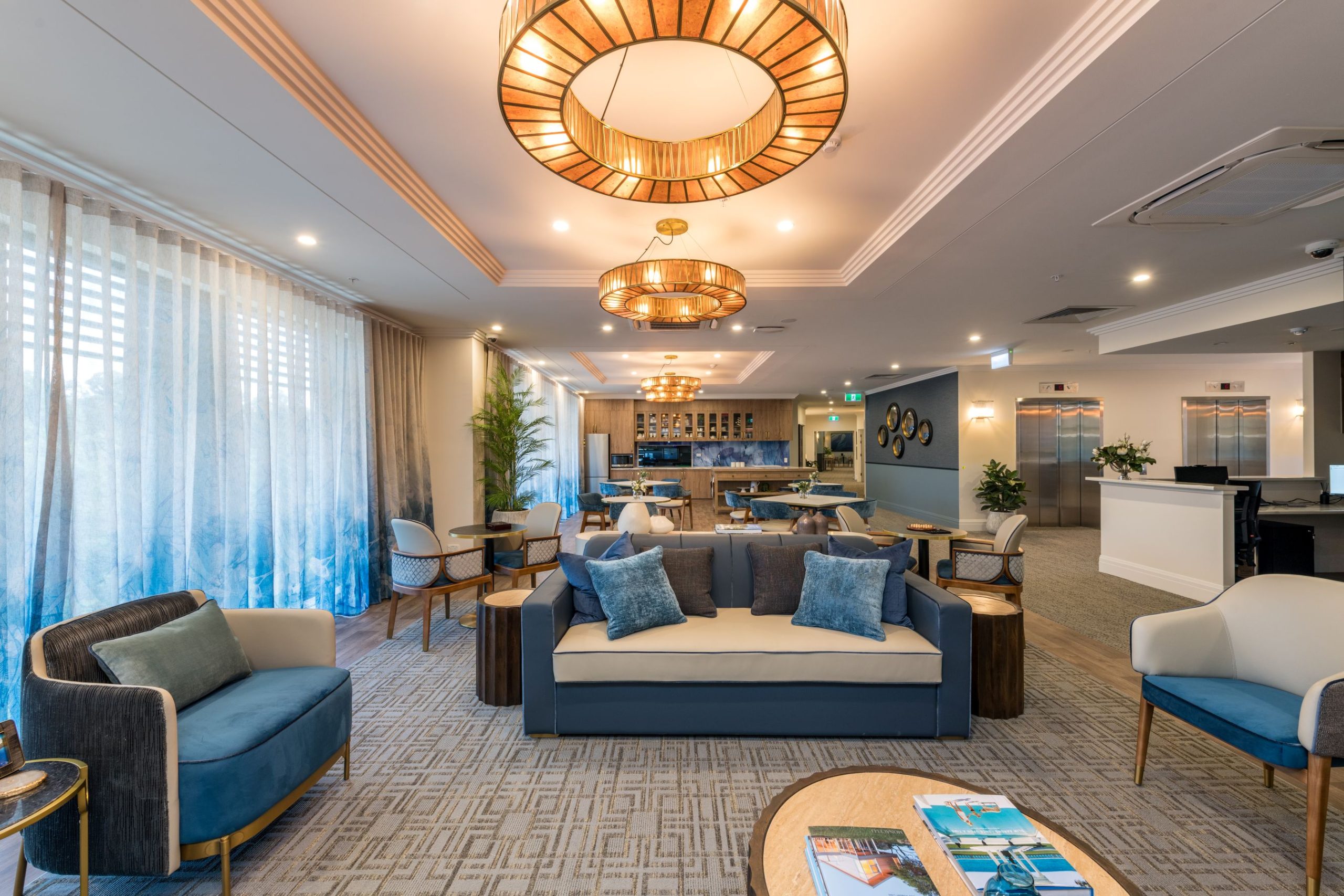 The space illustrated here shows the care we have taken in association with our Interior Design partners to create a multi-function space without compromising the ambience desired. The Lifestyle room beyond the partition walls can be closed for smaller groups or noisy activities, but the space can be opened to accommodate large functions if needed.